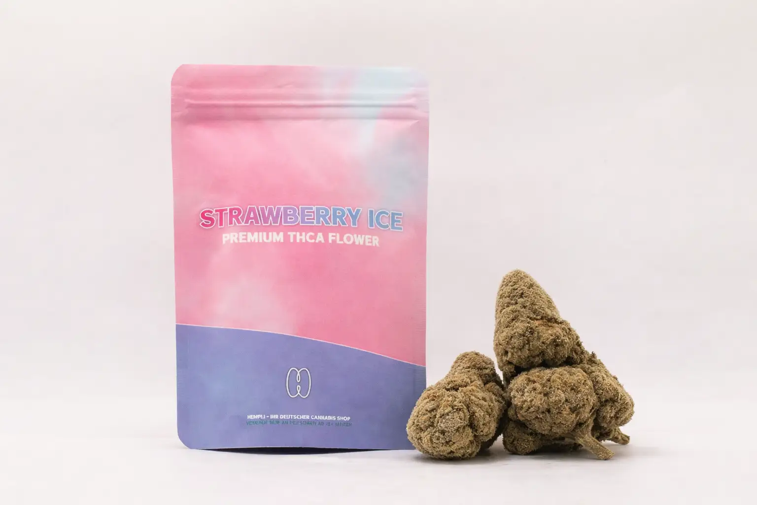Entdecken Sie unsere Premium Strawberry Ice THCA-Blüten mit einem starken THC-A Gehalt von 22%.